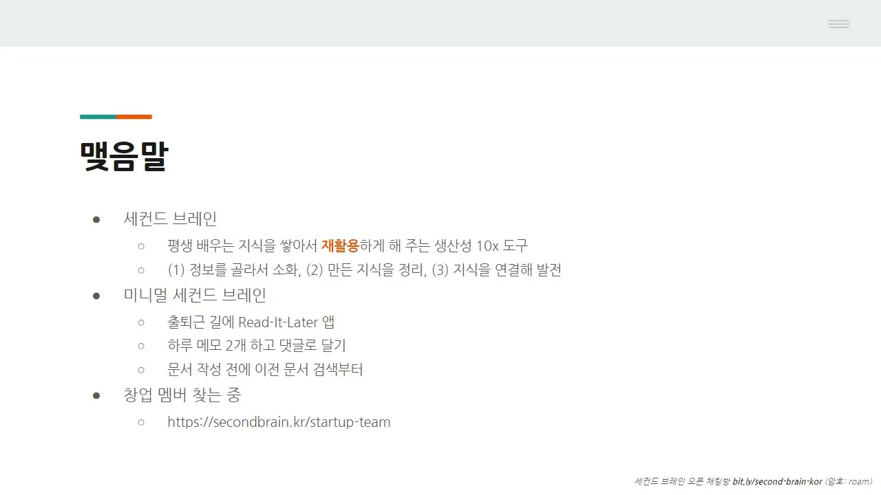 주제 : 세컨드 브레인 - 궁극의 생산성 10x 도구 발표