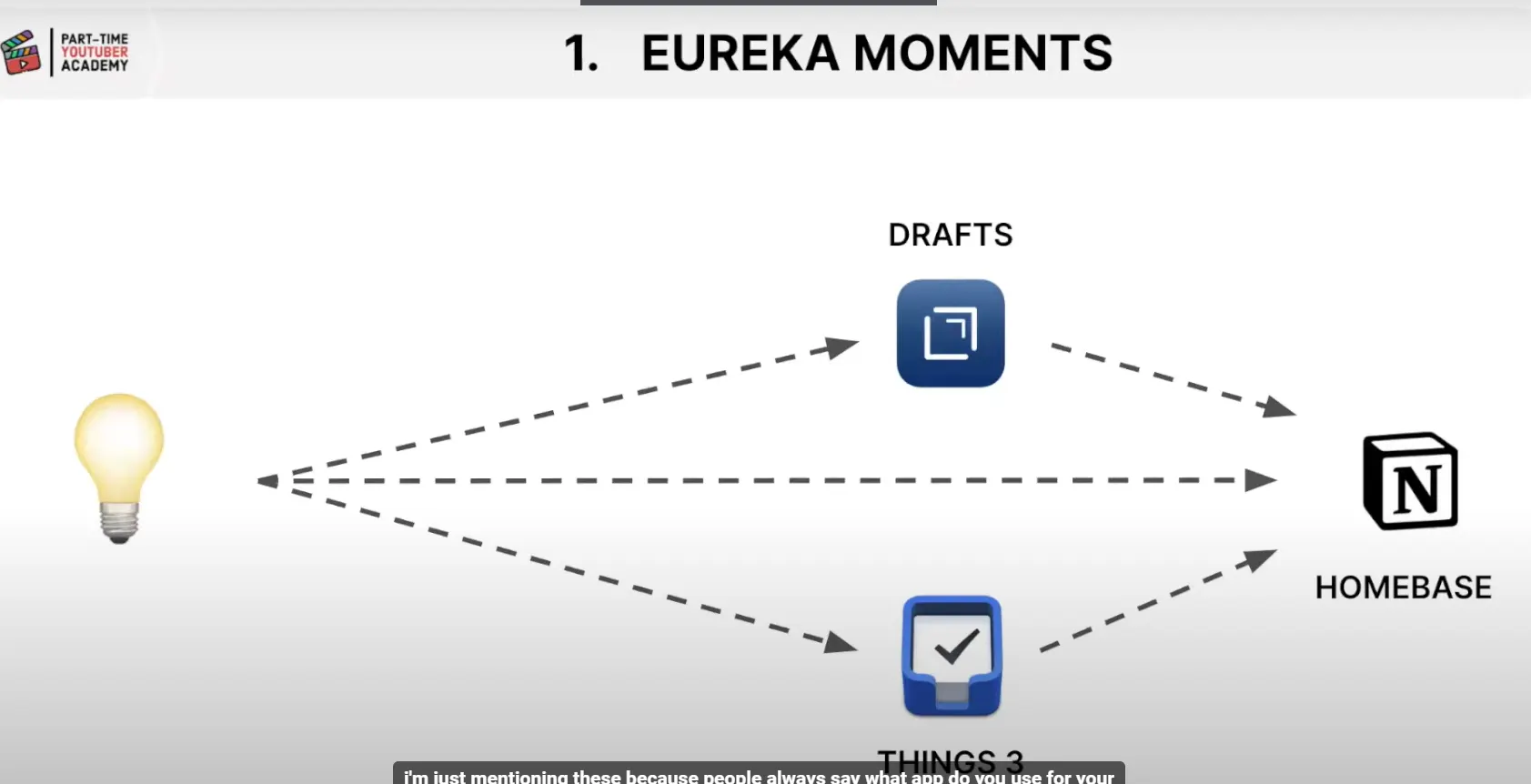 알리는 아이디어들을 바로 노션에 기록하려고 노력한다고 하고, 때에 따라서는 드래프트와 Things 앱을 거쳐서 노션으로 모아지기도 한다고 한다.