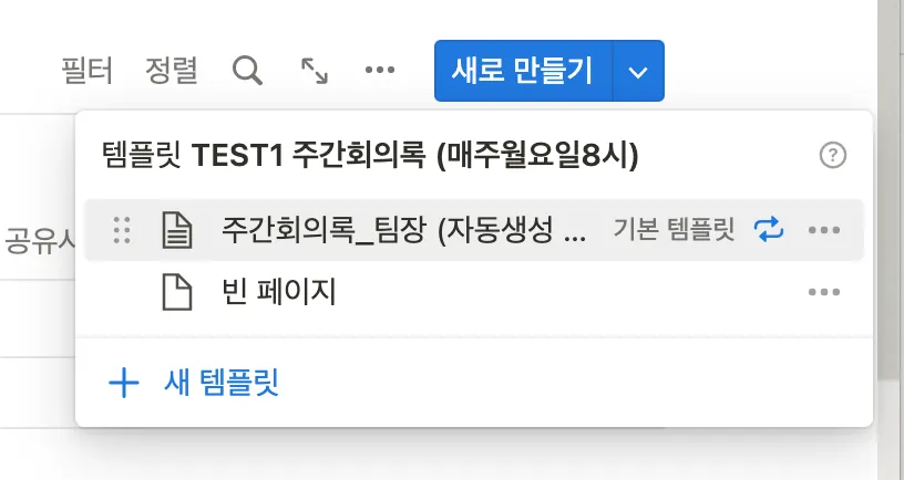 [새 템플릿] → 새 템플릿 만들기 먼저 진행