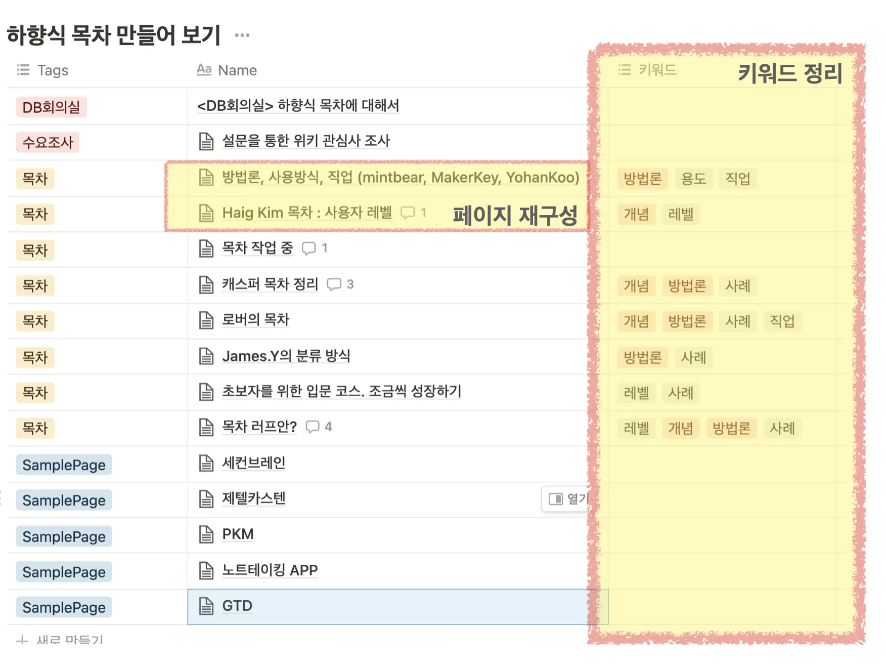 좋은 목차들을 살펴보다 보니, 공통분모가 보여서 키워드 방식으로 묶어 봅니다.
