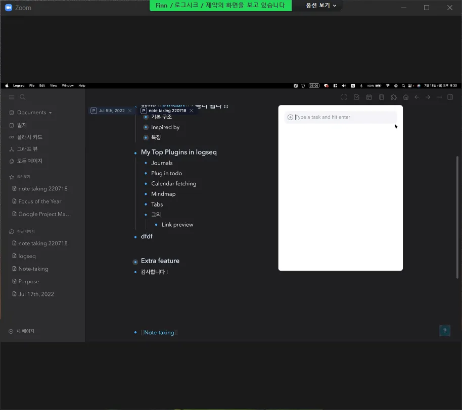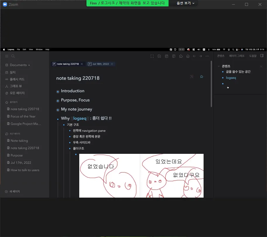 라는 이유로 Logseq 라는 앱을 선택하게 되었습니다.