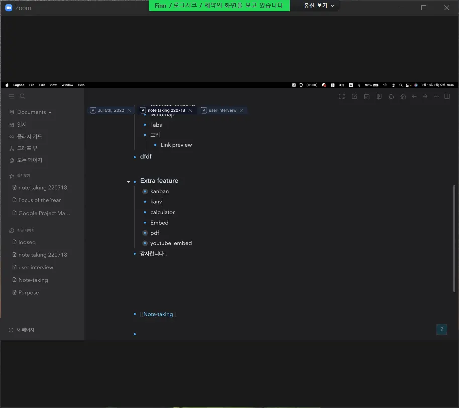 라는 이유로 Logseq 라는 앱을 선택하게 되었습니다.
