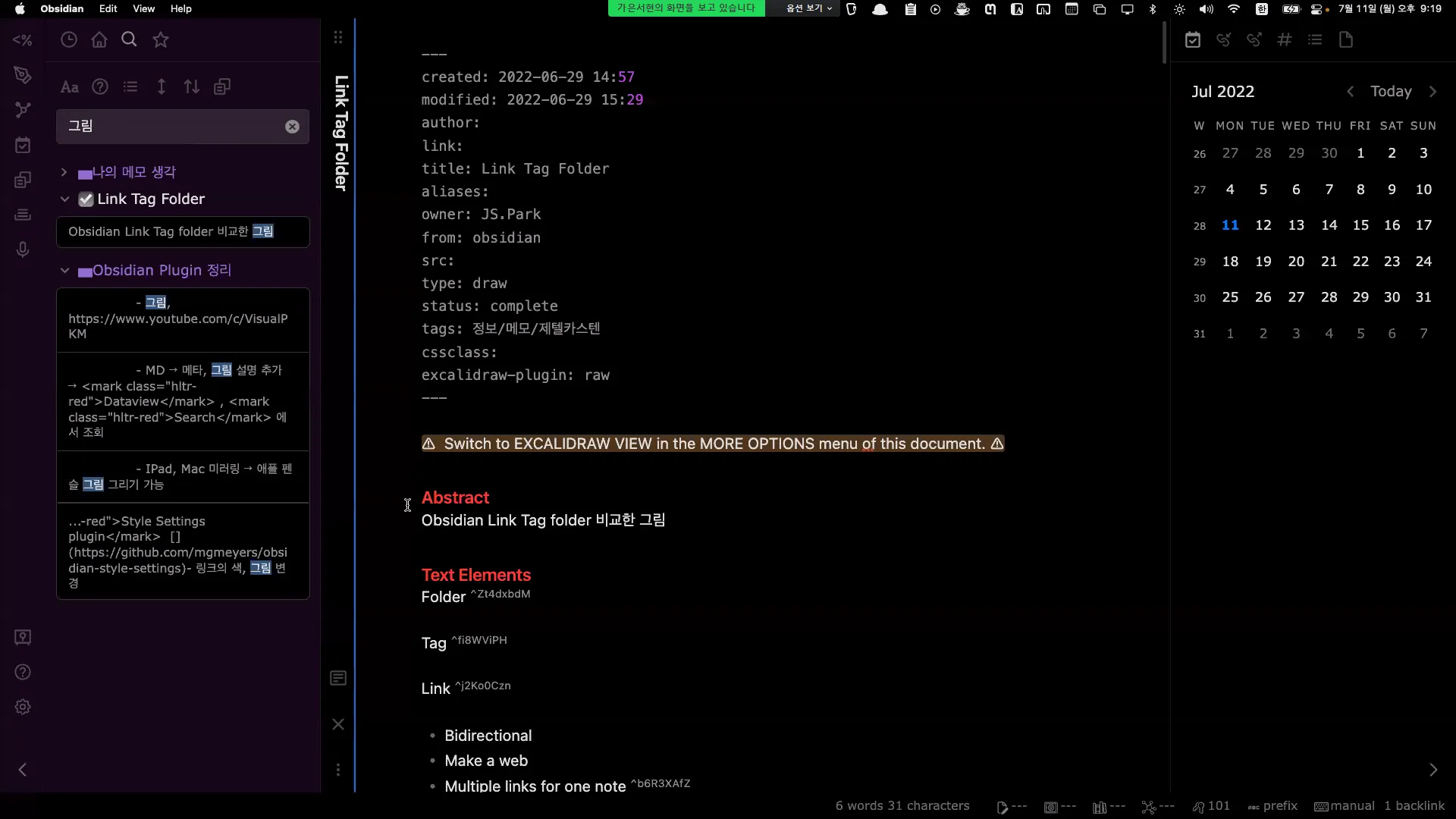 메모 필드에 이미지 & 다른 노트를 링크한 모습
