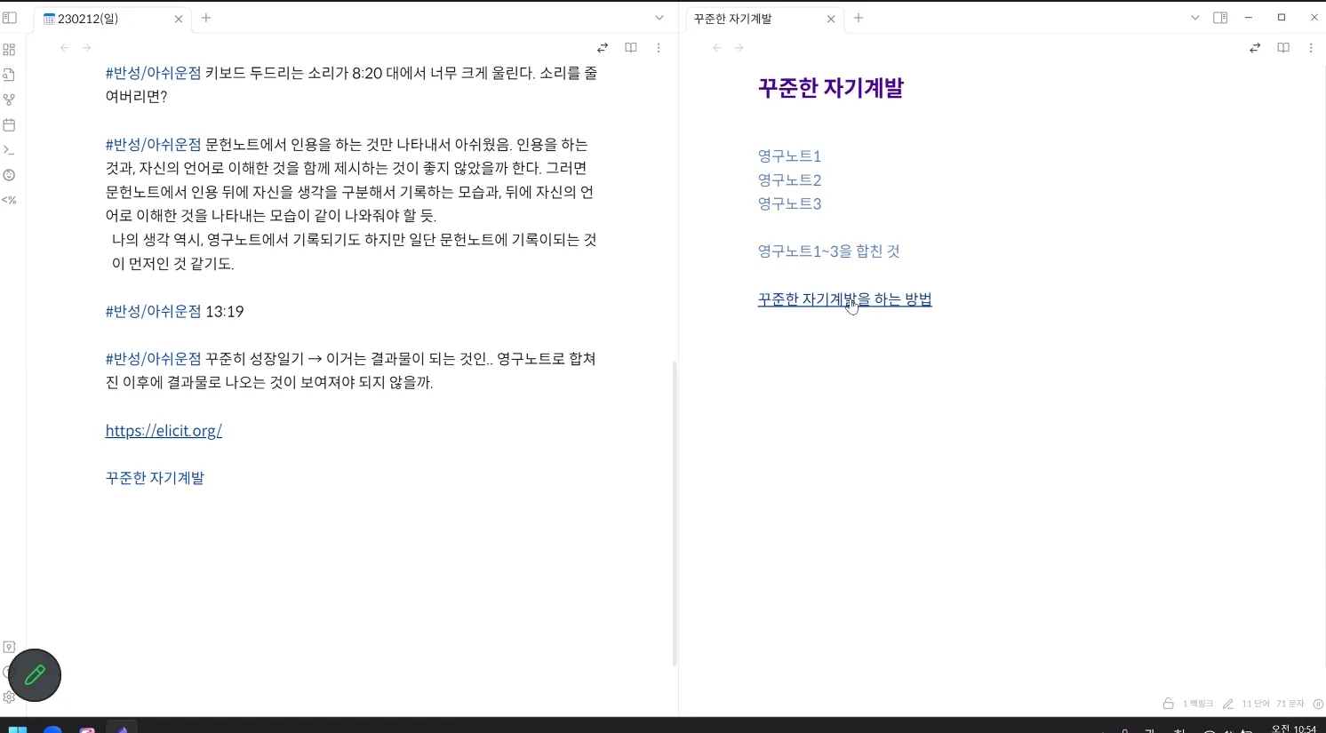 생성한 영구보관용 메모를 키워드 노트에 정리한다. 소제목을 달아준다?