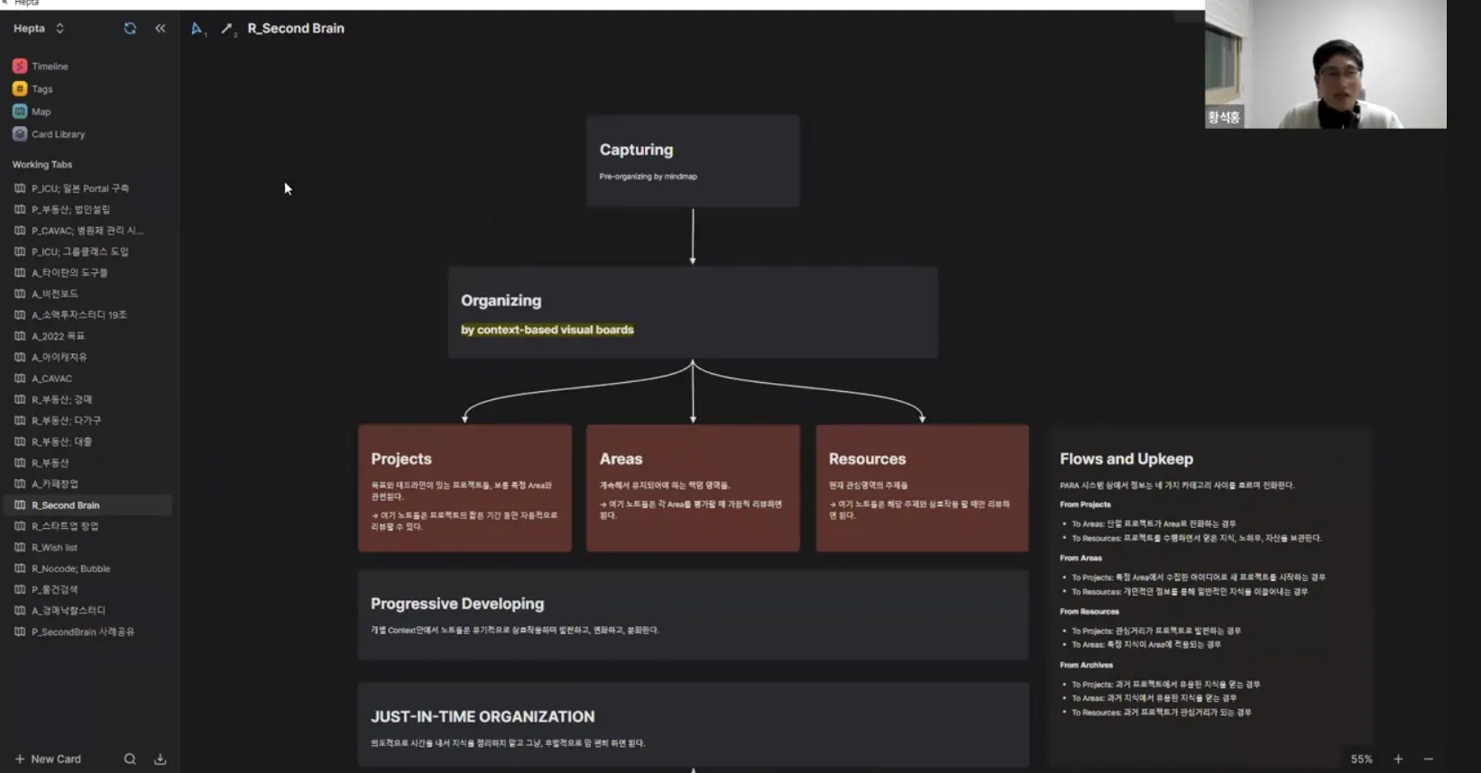 마치 탐정물에서 벽에 포스트잇 붙여가며 아이디어 정리하는 것처럼, 나만의 지식의 왕국 건설